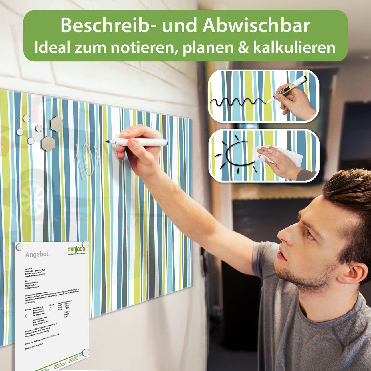 Bitte beachten Sie, dass ausschliessliche spezielle Magnete an der Glastafel haften. Wir empfehlen banjado Neodym Magnete, diese sind durch uns auf Wirksamkeit geprüft.