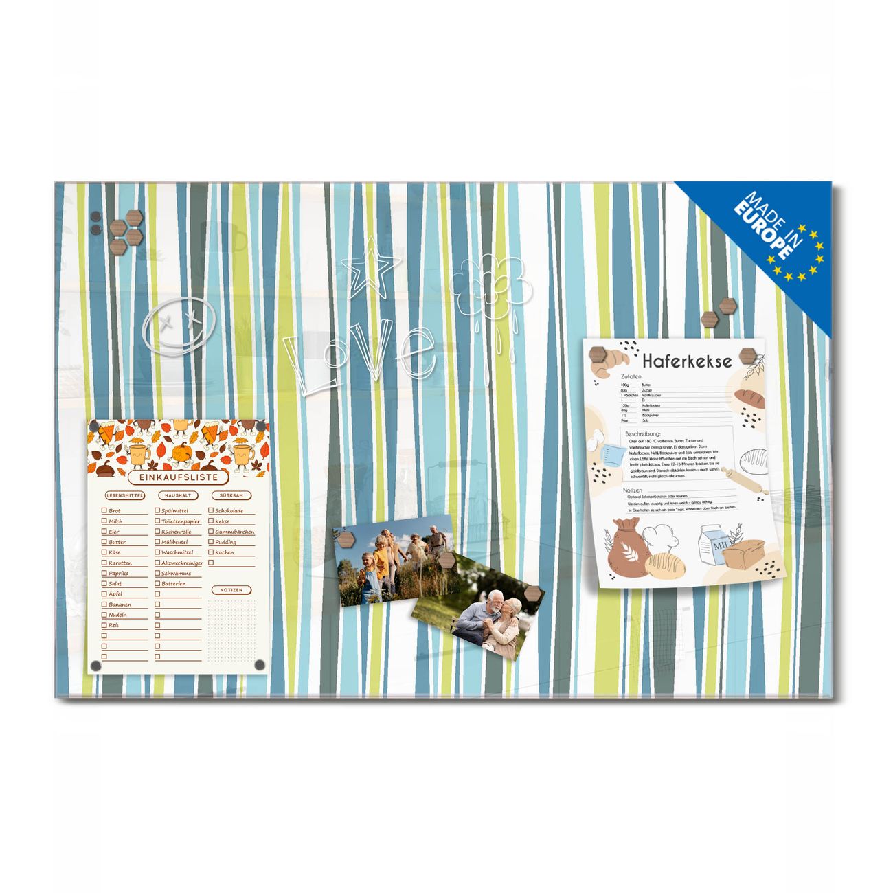 Auf der glatten Glasoberfläche lassen sich Termine, Rezepte oder Notizen ganz einfach mit Kreidestiften festhalten und rückstandslos entfernen. Starke Neodym-Magnete halten Ihre wichtigsten Erinnerungen sicher an Ort und Stelle. So entsteht Ihre ganz persönliche Ideenwand - jeden Tag neu.