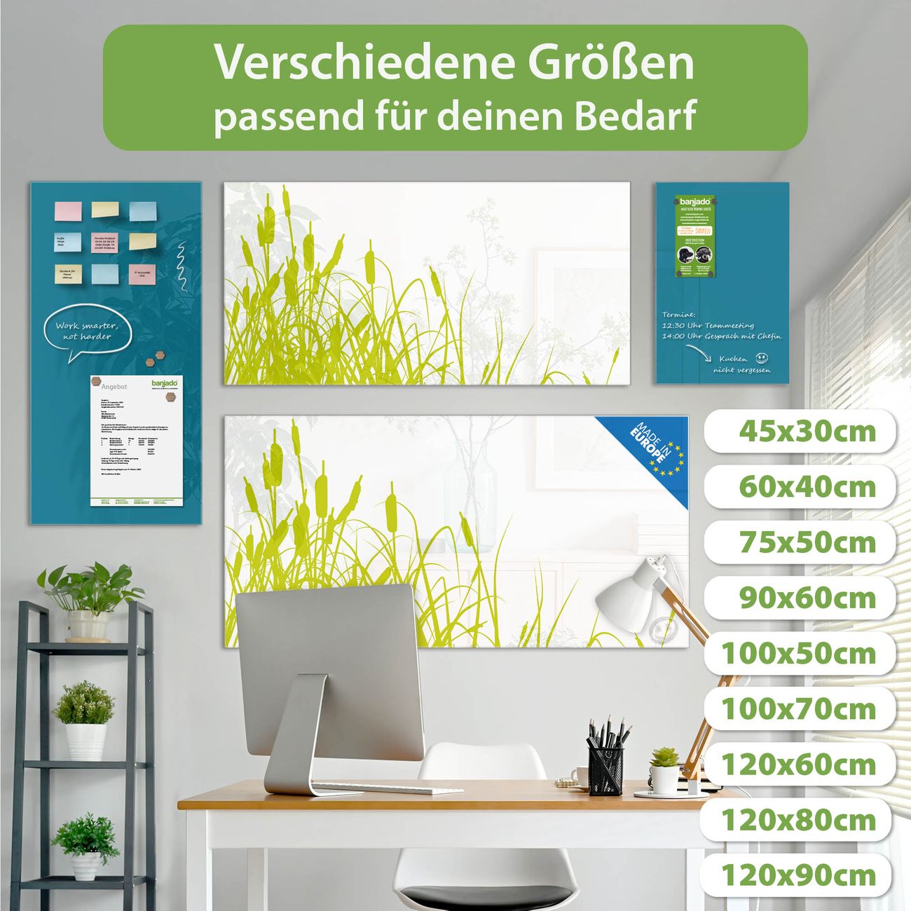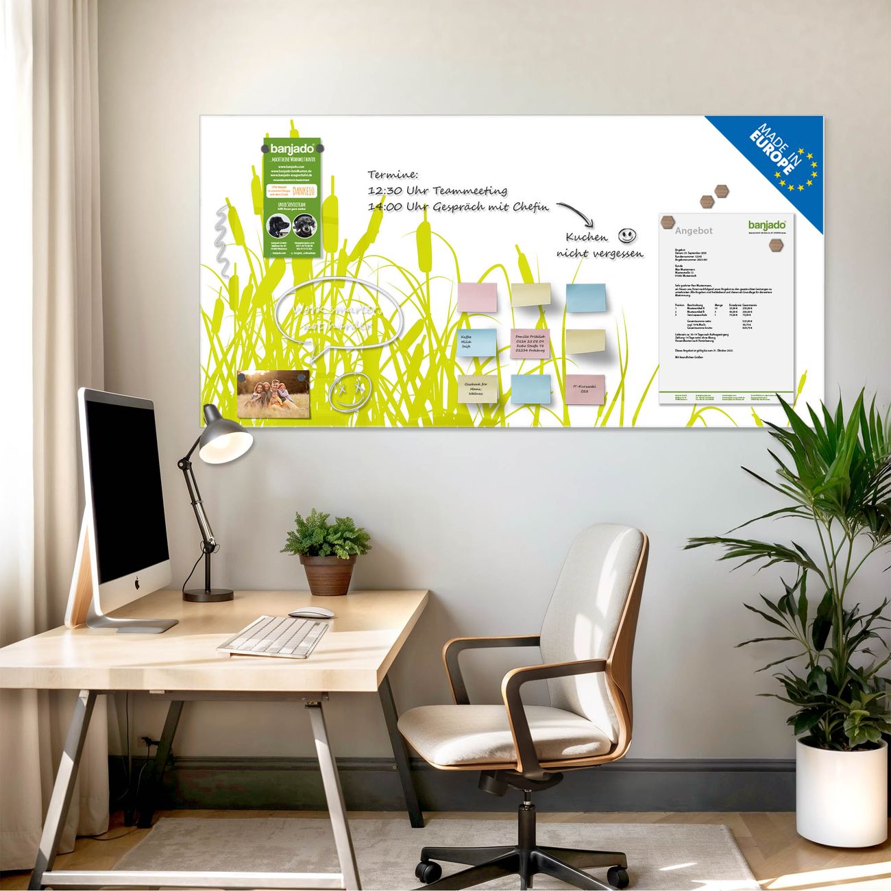 Jede Glas Magnettafel wird in unserer Werkstatt von Hand gefertigt und sorgfältig geprüft. So erhalten Sie ein echtes Qualitätsprodukt, das Funktion und Ästhetik perfekt vereint.?? Warum banjado?