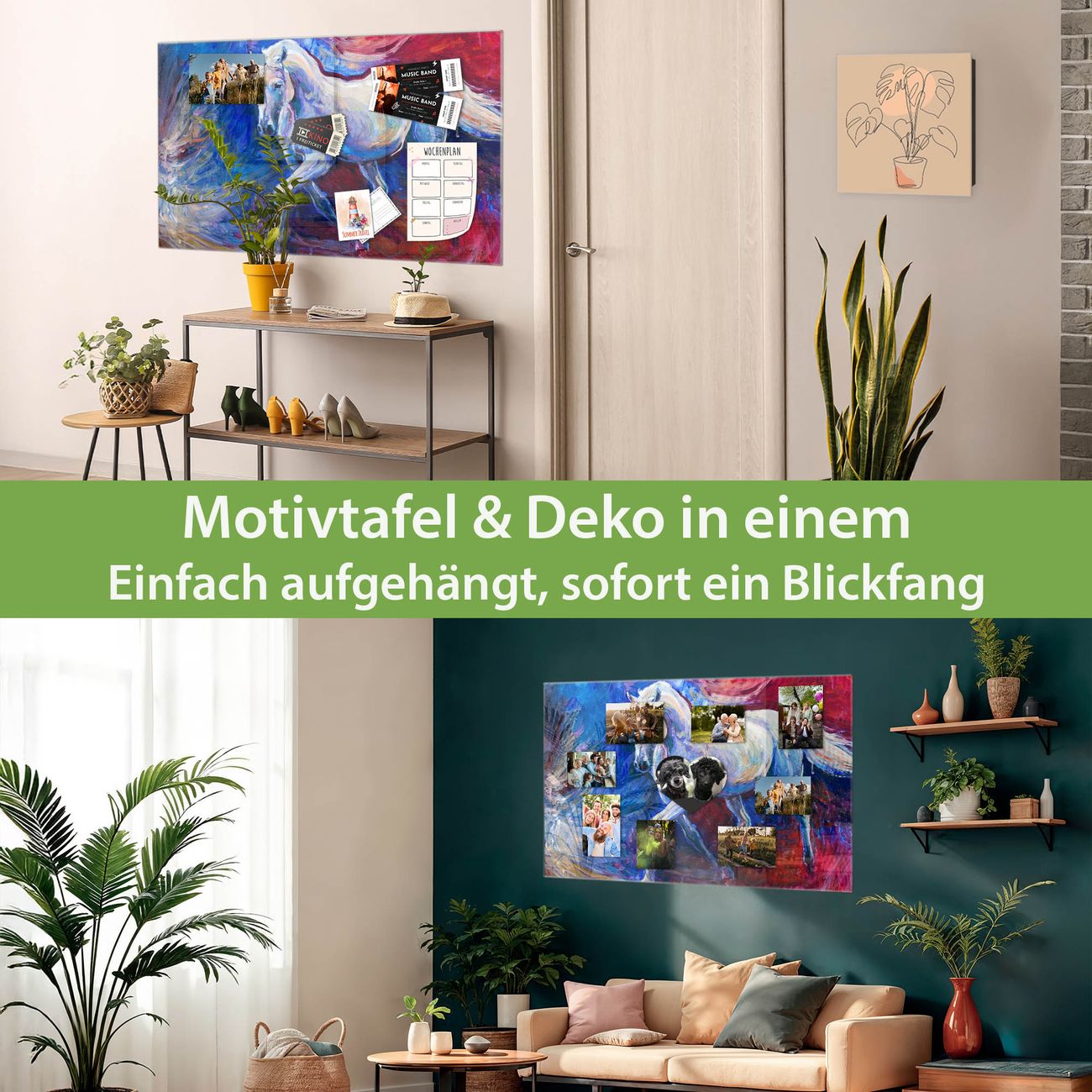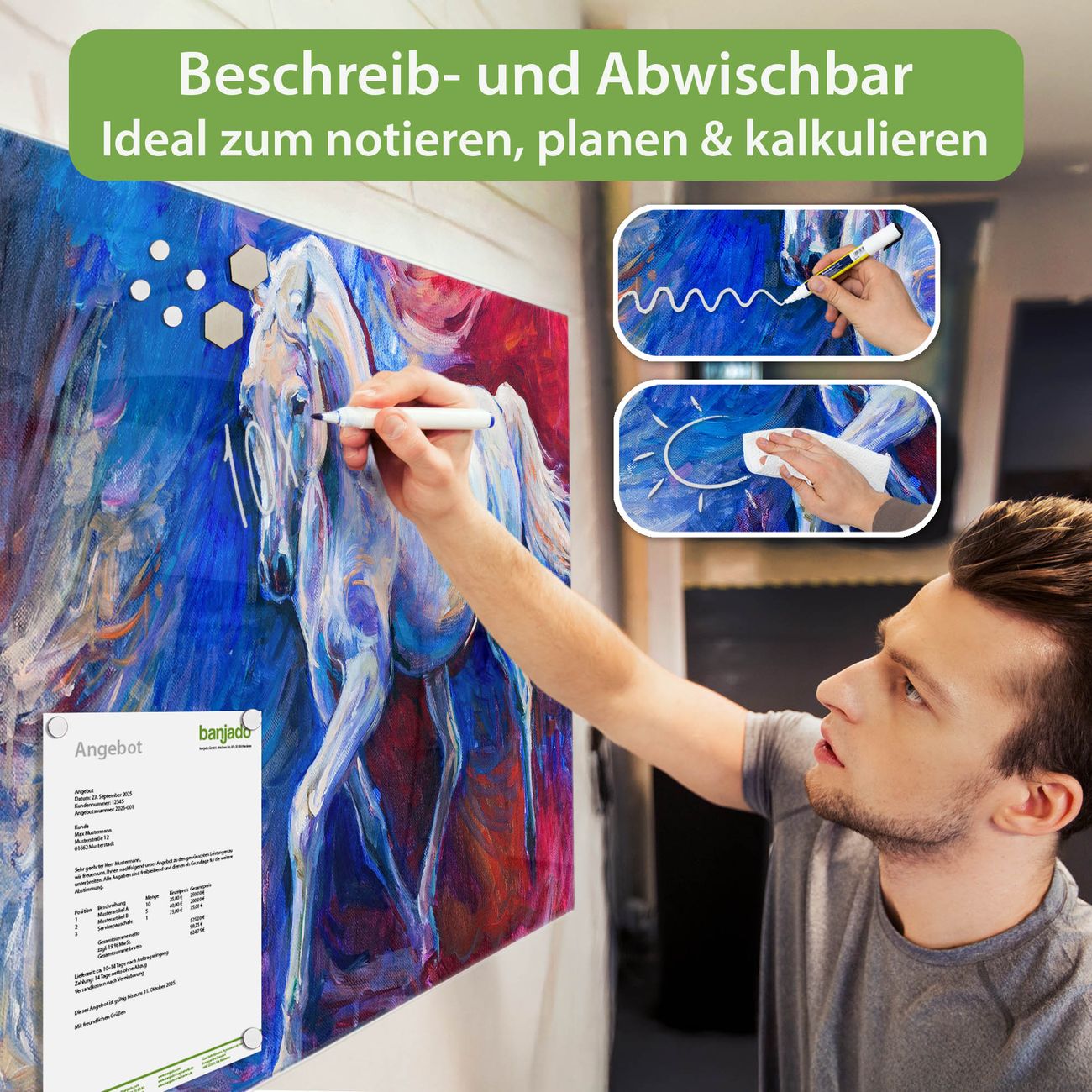 Die banjado Glas Magnettafel mit dem Motiv Motiv Schimmel verbindet Funktionalität mit Stil. Sie ersetzt das Zettelchaos durch klare Strukturen und bringt dabei eine warme, natürliche Atmosphäre in Ihr Zuhause. Ob im Büro, in der Küche oder im Eingangsbereich - dieses Design-Board zieht Blicke an und sorgt für Ordnung mit Charakter.