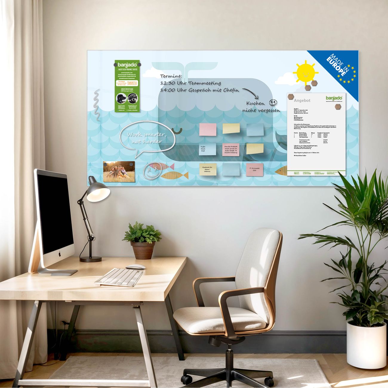 Die banjado Glas Magnettafel mit dem Motiv Motiv Schlafender Wal verbindet Funktionalität mit Stil. Sie ersetzt das Zettelchaos durch klare Strukturen und bringt dabei eine warme, natürliche Atmosphäre in Ihr Zuhause. Ob im Büro, in der Küche oder im Eingangsbereich - dieses Design-Board zieht Blicke an und sorgt für Ordnung mit Charakter.