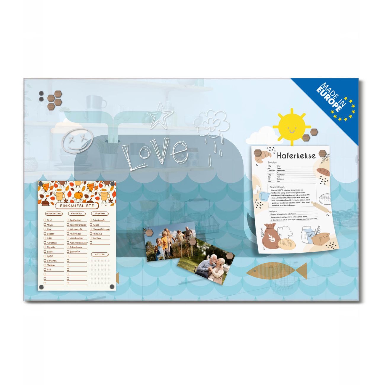 Auf der glatten Glasoberfläche lassen sich Termine, Rezepte oder Notizen ganz einfach mit Kreidestiften festhalten und rückstandslos entfernen. Starke Neodym-Magnete halten Ihre wichtigsten Erinnerungen sicher an Ort und Stelle. So entsteht Ihre ganz persönliche Ideenwand - jeden Tag neu.