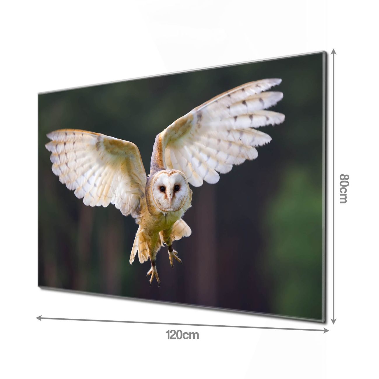 Material: 4mm Sicherheitsglas mit Metallrückwand Eigenschaften: beschreibbar, magnetisch, kratzfest Maße: 120x80x0,6cm, 14,40kg schwer Motiv Nummer 10503 Schleiereule Zubehör: inklusive 4 Neodym-Magnete