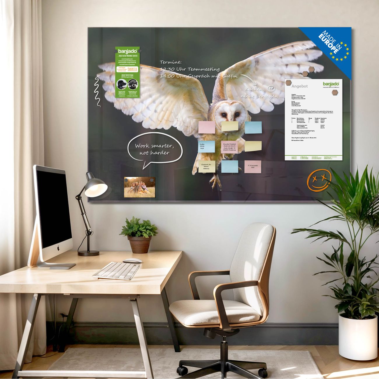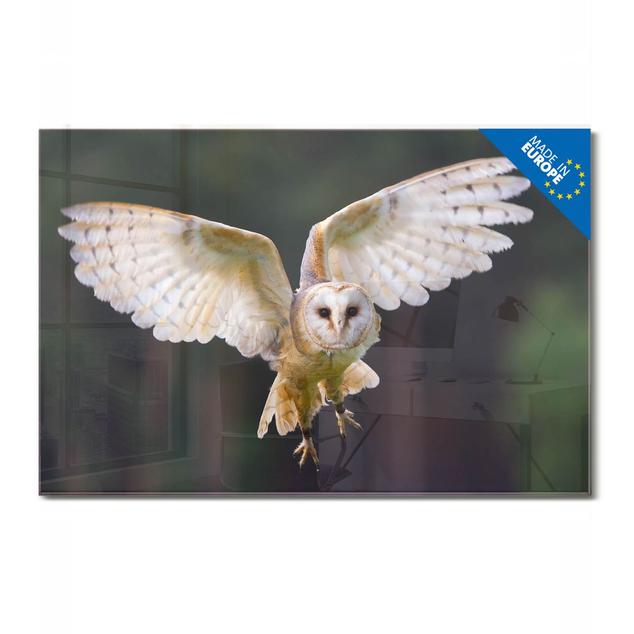 Glas Magnettafel im Querformat Motiv Schleiereule