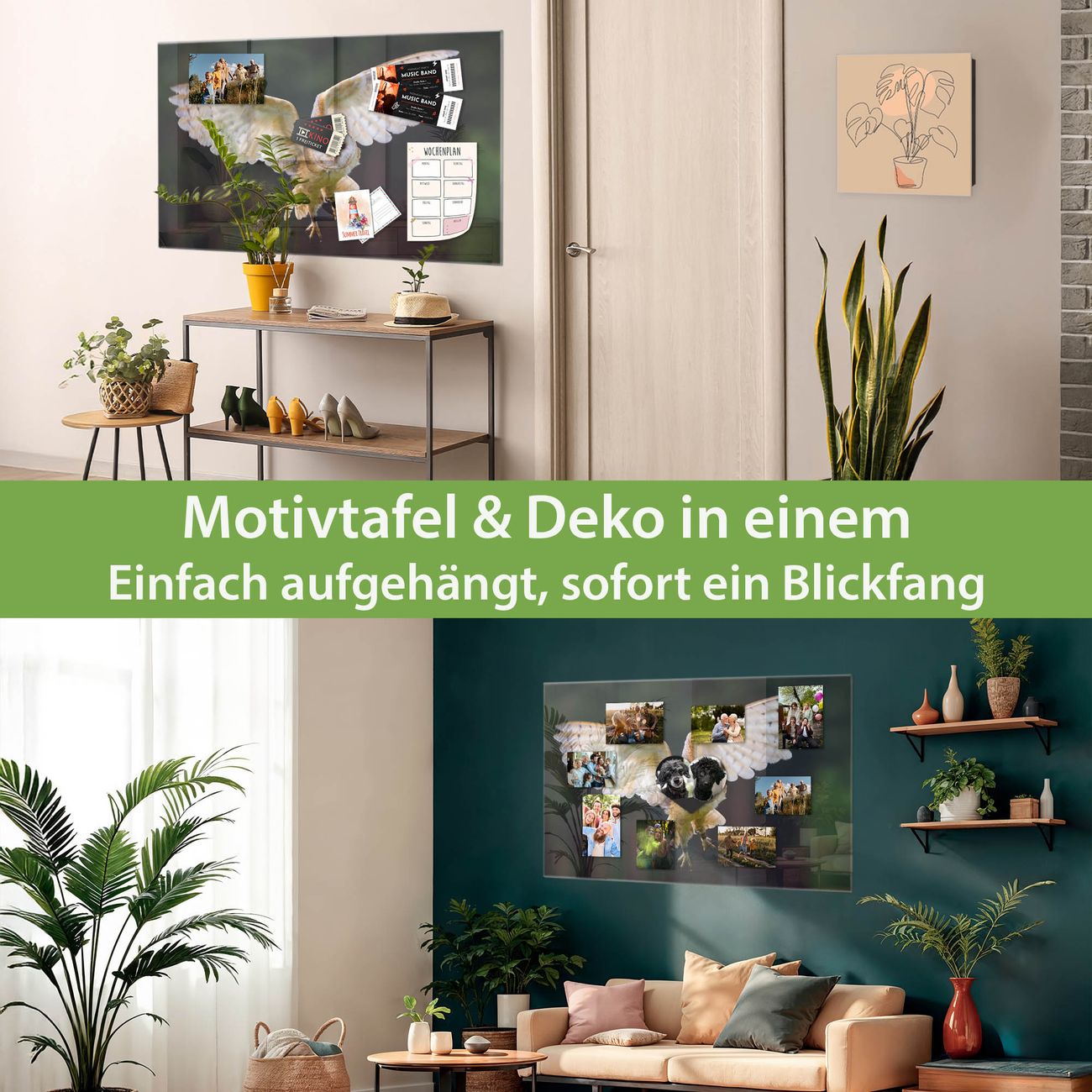 Ein Stück Design, das Ihren Alltag organisiert. Schreiben, heften, inspirieren - alles an einem Ort. Qualität, die man spürt. Montage leicht gemacht. Handwerk mit Herz - veredelt in Sachsen. Einzigartiges Design mit Motiv Motiv Schleiereule Beschreibbare Glasoberfläche, leicht zu reinigen Starke Magnetkraft durch Stahlrückwand Inklusive 4 Neodym-Magneten Flexible Montageoptionen Handveredelt in Sachsen - Qualität, die bleibt