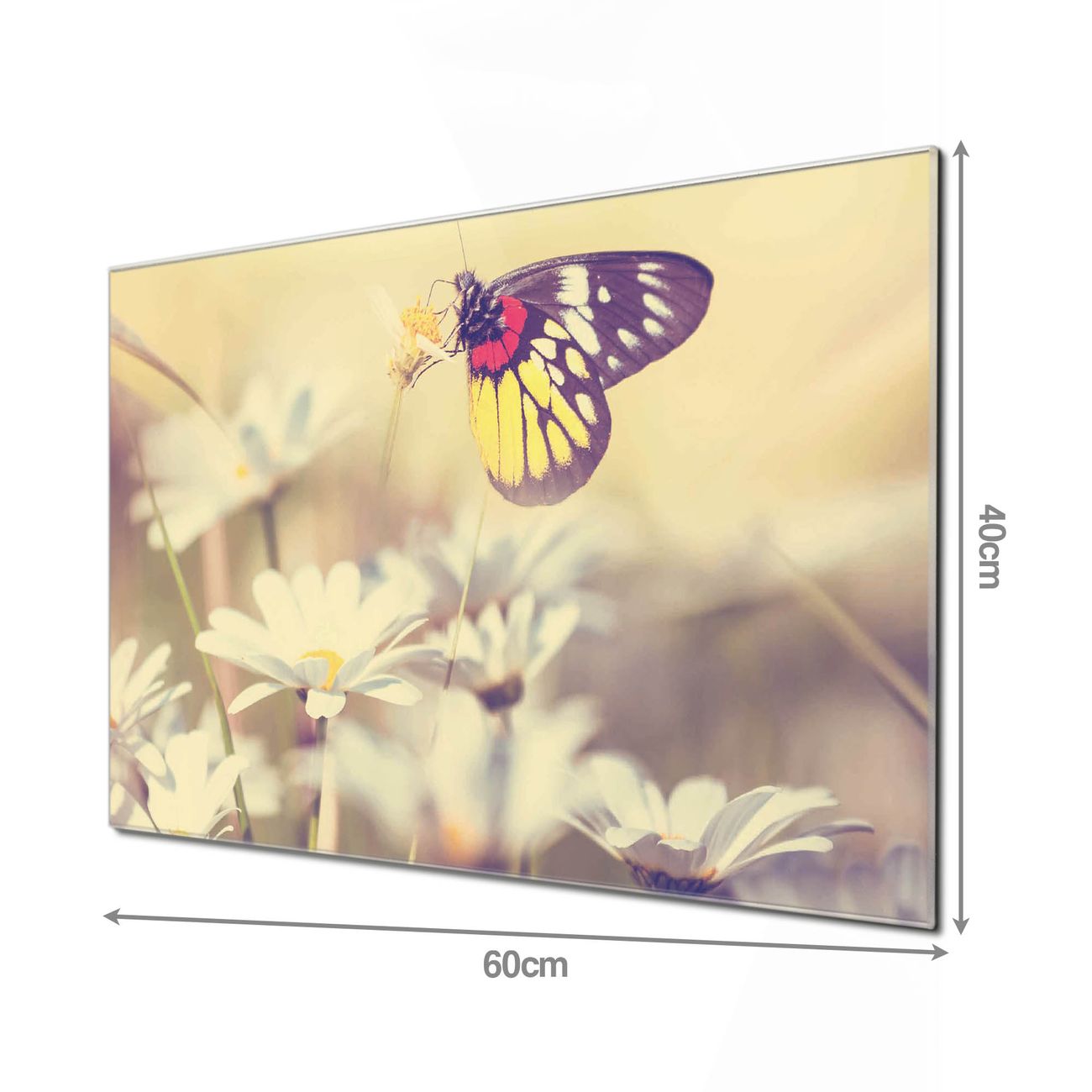 Material  4mm Sicherheitsglas mit Metallrückwand Eigenschaften  beschreibbar, magnetisch, kratzfest Maße  60x40x0,6cm, 3,6kg schwer Motiv  Nummer 12026 Rotgelber Falter Zubehör  inklusive 4 Neodym-Magnete