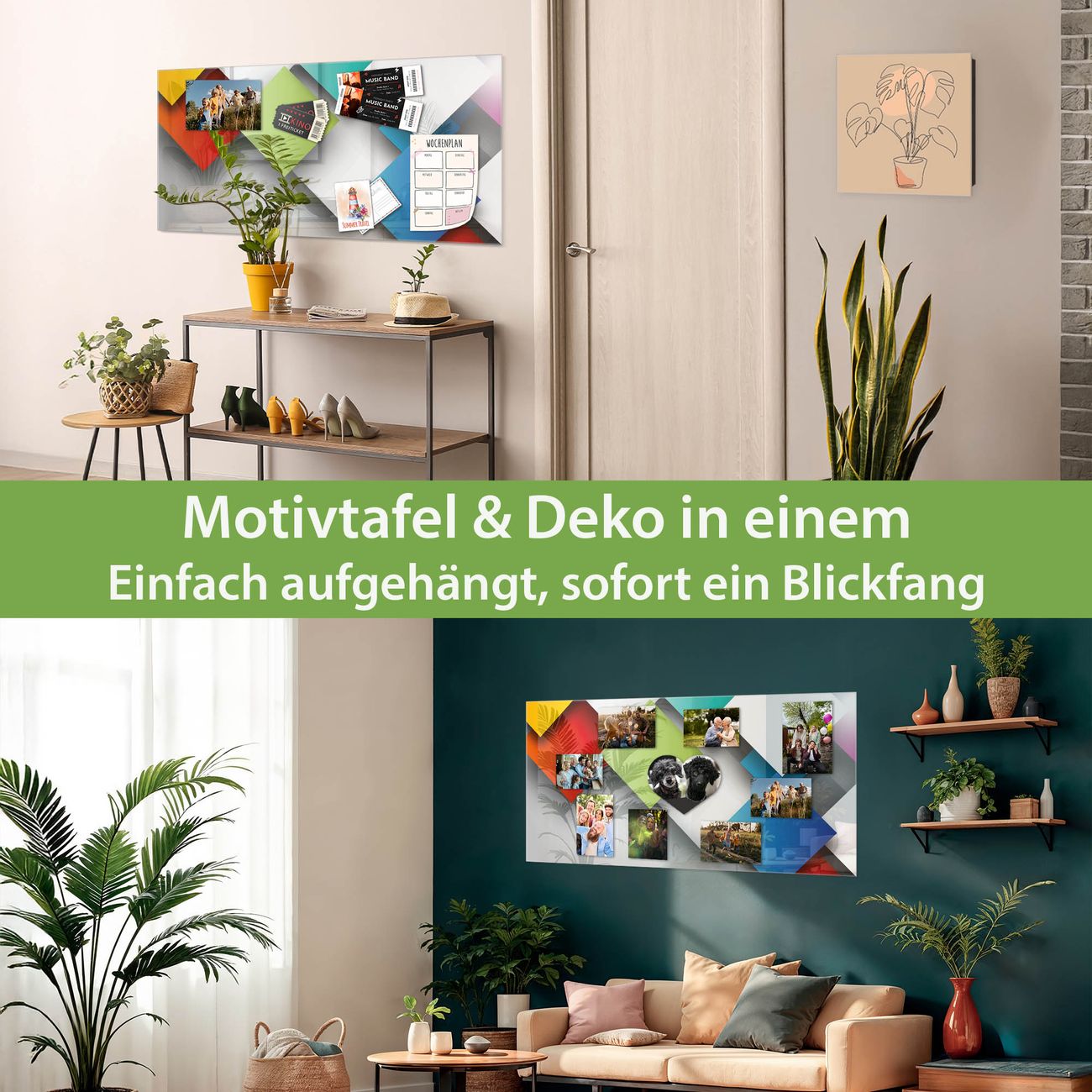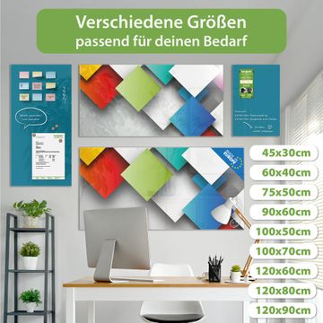 Die banjado Glas Magnettafel mit dem Motiv Motiv Schwebende Quadrate verbindet Funktionalität mit Stil. Sie ersetzt das Zettelchaos durch klare Strukturen und bringt dabei eine warme, natürliche Atmosphäre in Ihr Zuhause. Ob im Büro, in der Küche oder im Eingangsbereich - dieses Design-Board zieht Blicke an und sorgt für Ordnung mit Charakter.