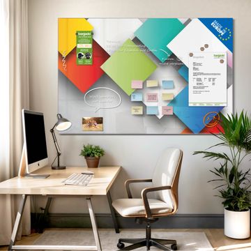 Die banjado Glas Magnettafel mit dem Motiv Motiv Schwebende Quadrate verbindet Funktionalität mit Stil. Sie ersetzt das Zettelchaos durch klare Strukturen und bringt dabei eine warme, natürliche Atmosphäre in Ihr Zuhause. Ob im Büro, in der Küche oder im Eingangsbereich - dieses Design-Board zieht Blicke an und sorgt für Ordnung mit Charakter.