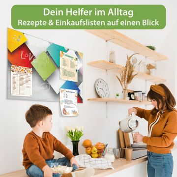Auf der glatten Glasoberfläche lassen sich Termine, Rezepte oder Notizen ganz einfach mit Kreidestiften festhalten und rückstandslos entfernen. Starke Neodym-Magnete halten Ihre wichtigsten Erinnerungen sicher an Ort und Stelle. So entsteht Ihre ganz persönliche Ideenwand - jeden Tag neu.