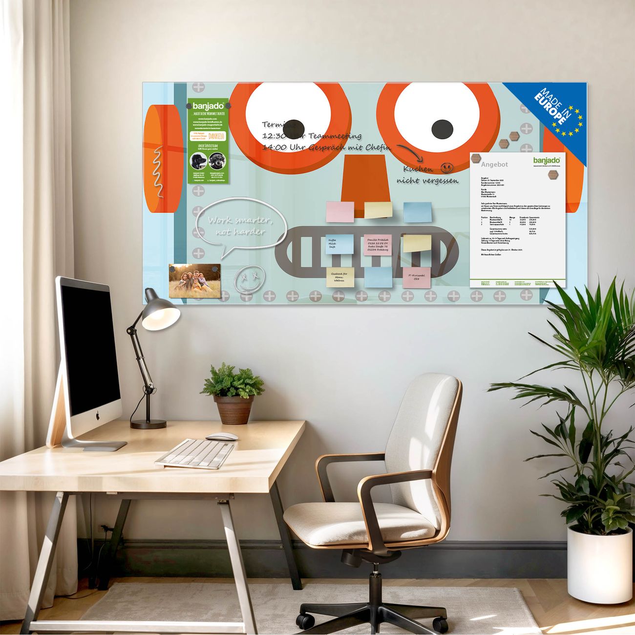 Die banjado Glas Magnettafel mit dem Motiv Motiv Shocked Robot verbindet Funktionalität mit Stil. Sie ersetzt das Zettelchaos durch klare Strukturen und bringt dabei eine warme, natürliche Atmosphäre in Ihr Zuhause. Ob im Büro, in der Küche oder im Eingangsbereich - dieses Design-Board zieht Blicke an und sorgt für Ordnung mit Charakter.