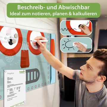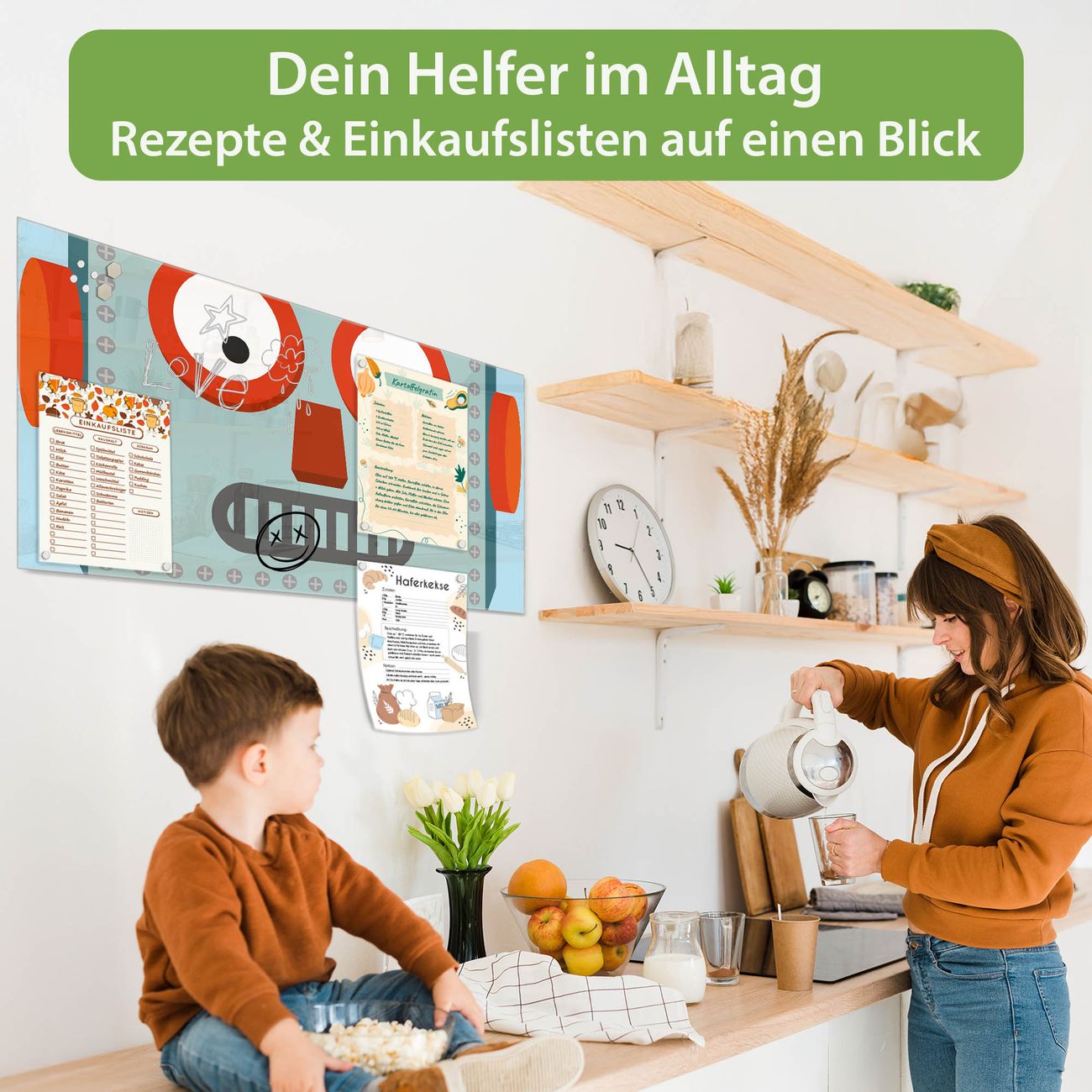 Auf der glatten Glasoberfläche lassen sich Termine, Rezepte oder Notizen ganz einfach mit Kreidestiften festhalten und rückstandslos entfernen. Starke Neodym-Magnete halten Ihre wichtigsten Erinnerungen sicher an Ort und Stelle. So entsteht Ihre ganz persönliche Ideenwand - jeden Tag neu.