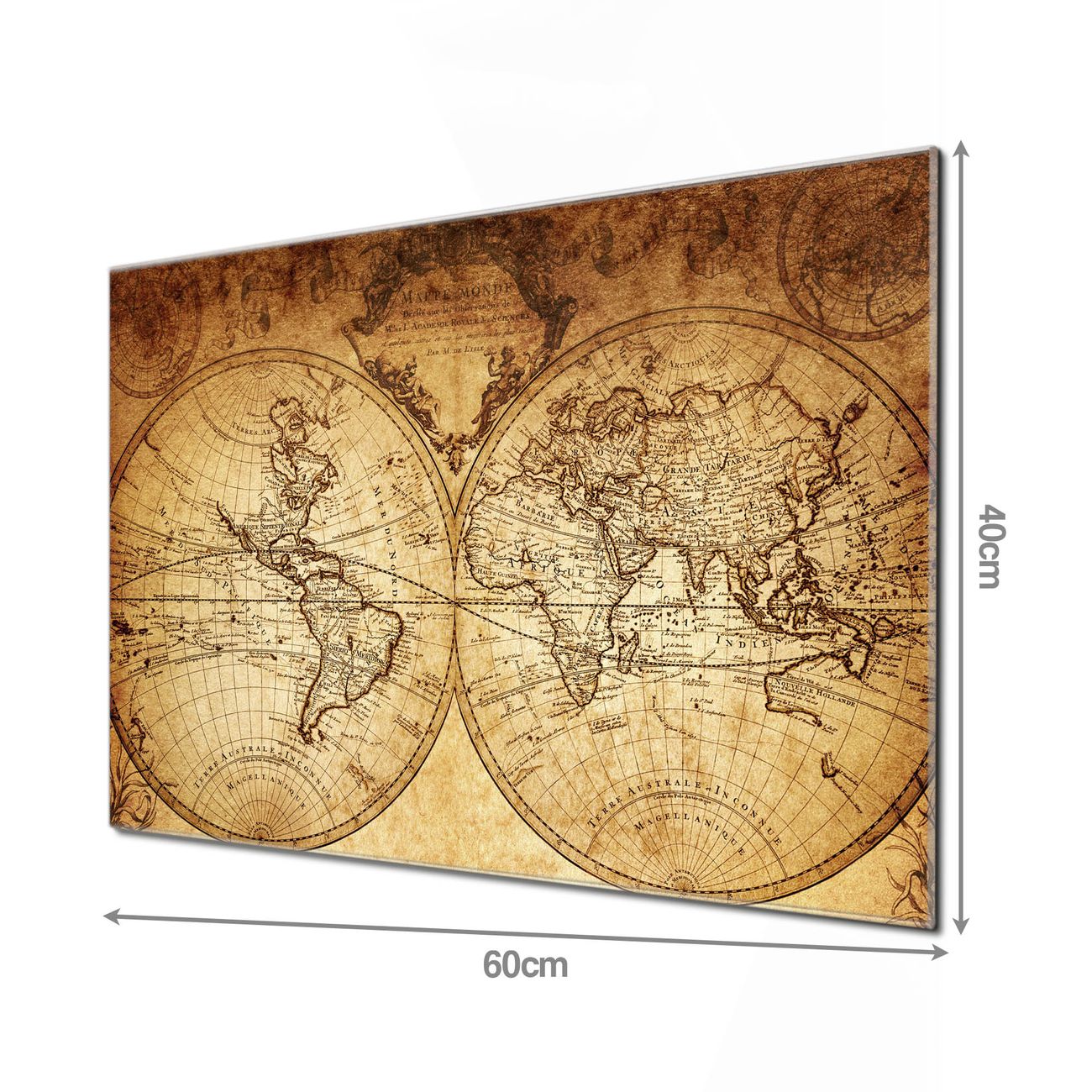 Material  4mm Sicherheitsglas mit Metallrückwand Eigenschaften  beschreibbar, magnetisch, kratzfest Maße  60x40x0,6cm, 3,6kg schwer Motiv  Nummer 12411 Sieben Weltmeere Zubehör  inklusive 4 Neodym-Magnete