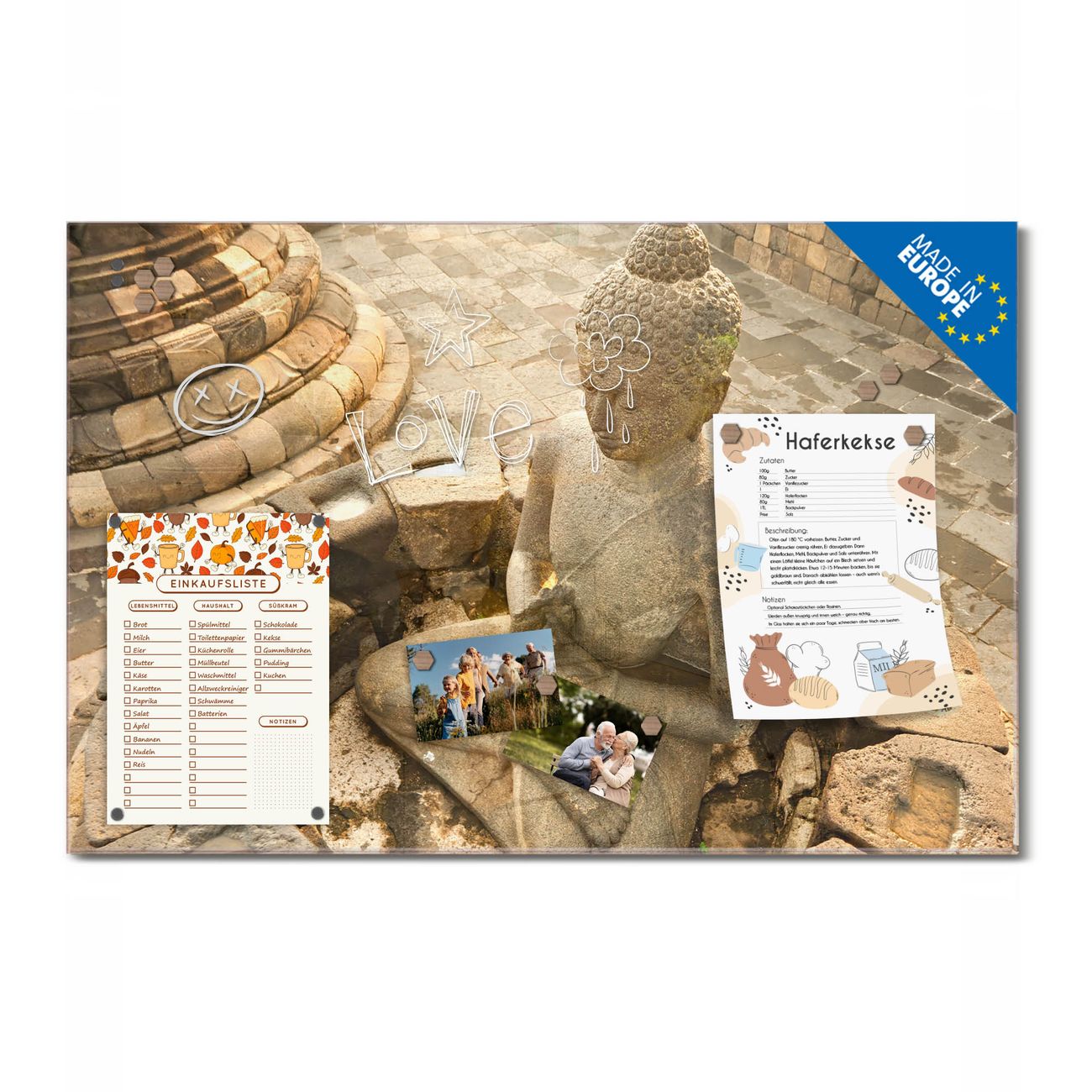 Glas Magnettafel im Querformat Motiv Sitzender Buddha