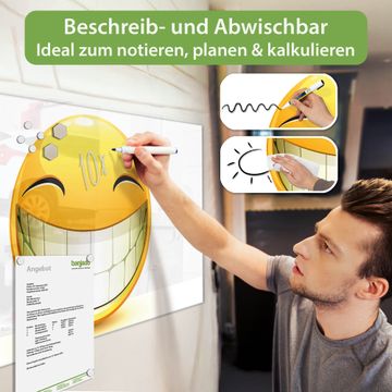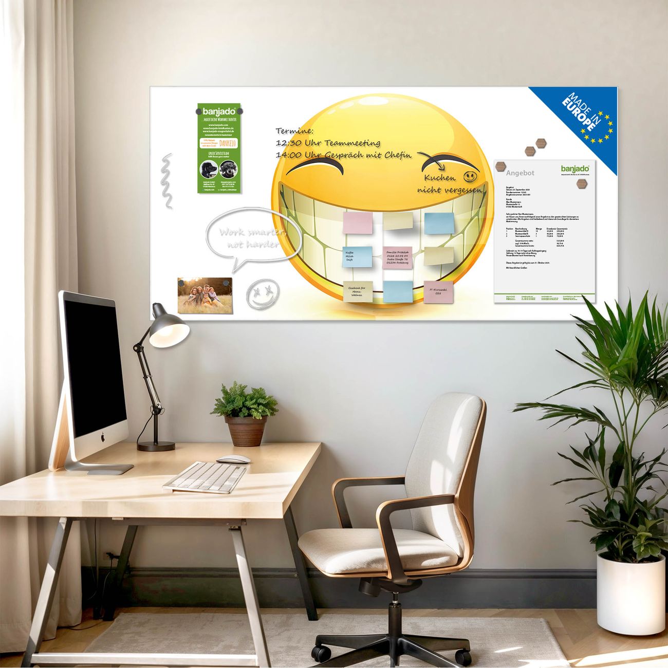 Die banjado Glas Magnettafel mit dem Motiv Motiv Smile verbindet Funktionalität mit Stil. Sie ersetzt das Zettelchaos durch klare Strukturen und bringt dabei eine warme, natürliche Atmosphäre in Ihr Zuhause. Ob im Büro, in der Küche oder im Eingangsbereich - dieses Design-Board zieht Blicke an und sorgt für Ordnung mit Charakter.
