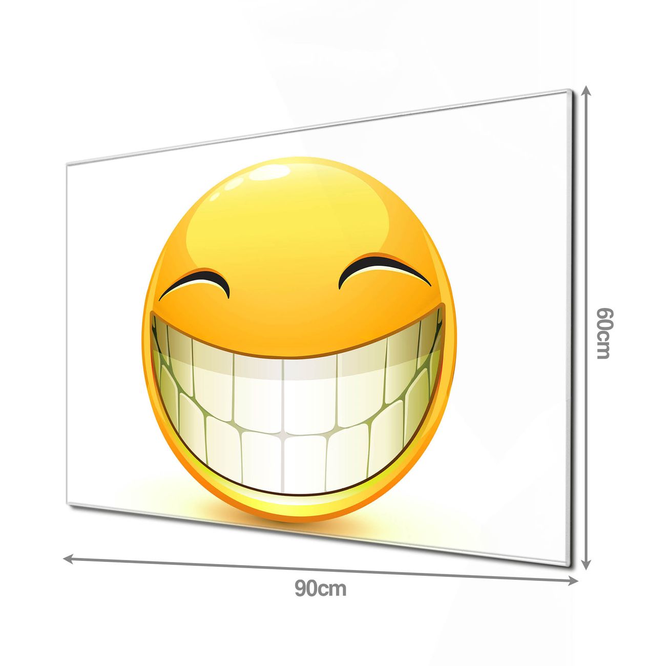 Material: 4mm Sicherheitsglas mit Metallrückwand Eigenschaften: beschreibbar, magnetisch, kratzfest Maße: 90x60x0,6cm, 8,10kg schwer Motiv Nummer 10188 Smile Zubehör: inklusive 4 Neodym-Magnete