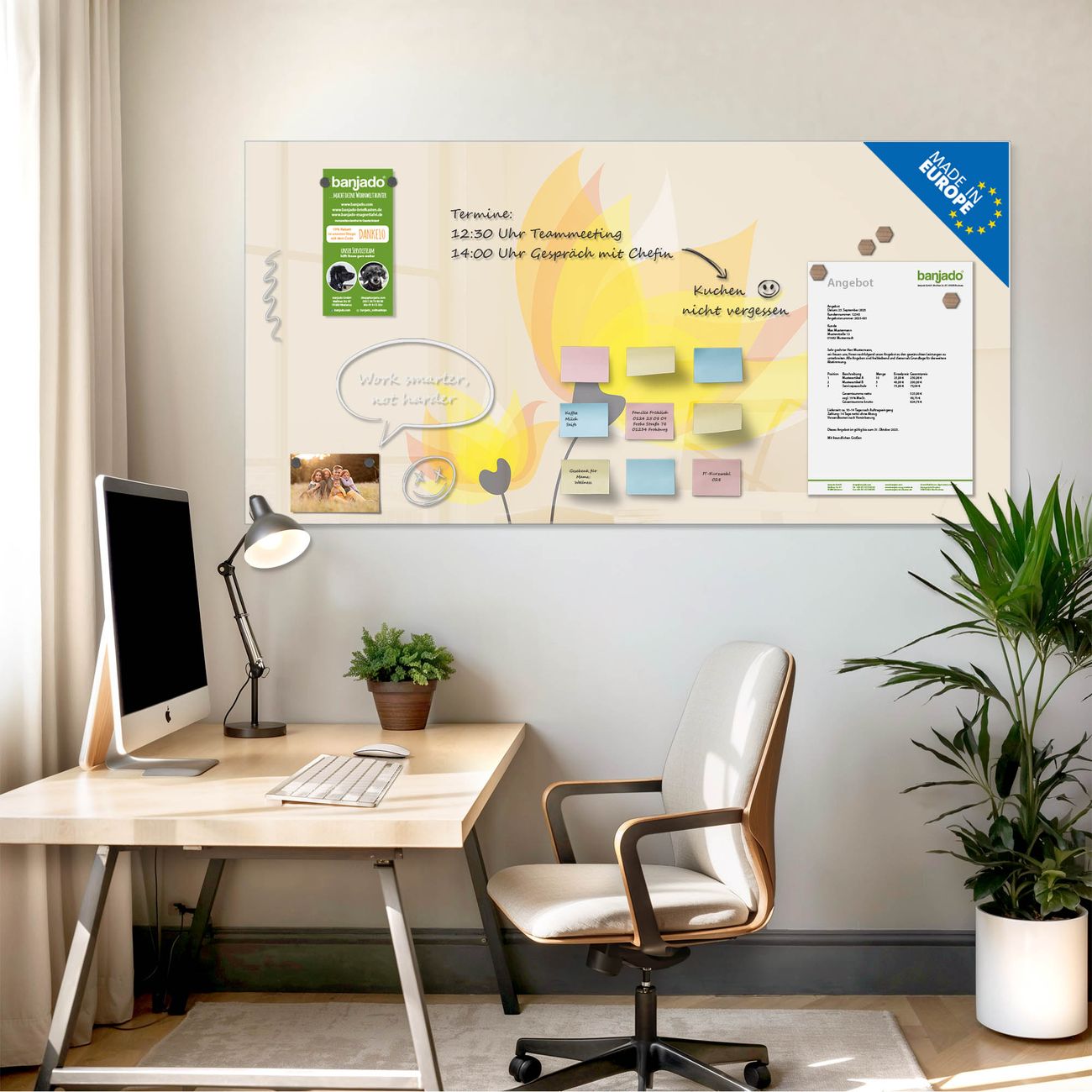 Die banjado Glas Magnettafel mit dem Motiv Motiv Sommerblüten verbindet Funktionalität mit Stil. Sie ersetzt das Zettelchaos durch klare Strukturen und bringt dabei eine warme, natürliche Atmosphäre in Ihr Zuhause. Ob im Büro, in der Küche oder im Eingangsbereich - dieses Design-Board zieht Blicke an und sorgt für Ordnung mit Charakter.
