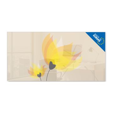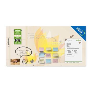 Material: 4mm Sicherheitsglas mit Metallrückwand Eigenschaften: beschreibbar, magnetisch, kratzfest Maße: 100x50x0,6cm, 7,50kg schwer Motiv Nummer 10384 Sommerblüten Zubehör: inklusive 4 Neodym-Magnete