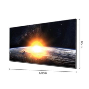 Material: 4mm Sicherheitsglas mit Metallrückwand Eigenschaften: beschreibbar, magnetisch, kratzfest Maße: 120x60x0,6cm, 10,80kg schwer Motiv Nummer 12532 Sonne im Weltall Zubehör: inklusive 4 Neodym-Magnete