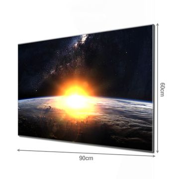 Material: 4mm Sicherheitsglas mit Metallrückwand Eigenschaften: beschreibbar, magnetisch, kratzfest Maße: 90x60x0,6cm, 8,10kg schwer Motiv Nummer 12532 Sonne im Weltall Zubehör: inklusive 4 Neodym-Magnete
