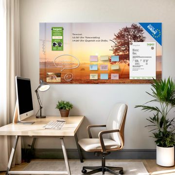 Die banjado Glas Magnettafel mit dem Motiv Motiv Sonnenaufgang verbindet Funktionalität mit Stil. Sie ersetzt das Zettelchaos durch klare Strukturen und bringt dabei eine warme, natürliche Atmosphäre in Ihr Zuhause. Ob im Büro, in der Küche oder im Eingangsbereich - dieses Design-Board zieht Blicke an und sorgt für Ordnung mit Charakter.