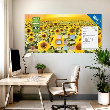 Die banjado Glas Magnettafel mit dem Motiv Motiv Sonnenblumenmeer verbindet Funktionalität mit Stil. Sie ersetzt das Zettelchaos durch klare Strukturen und bringt dabei eine warme, natürliche Atmosphäre in Ihr Zuhause. Ob im Büro, in der Küche oder im Eingangsbereich - dieses Design-Board zieht Blicke an und sorgt für Ordnung mit Charakter.