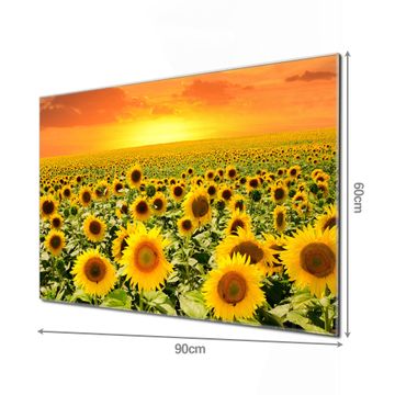 Material: 4mm Sicherheitsglas mit Metallrückwand Eigenschaften: beschreibbar, magnetisch, kratzfest Maße: 90x60x0,6cm, 8,10kg schwer Motiv Nummer 12283 Sonnenblumenmeer Zubehör: inklusive 4 Neodym-Magnete