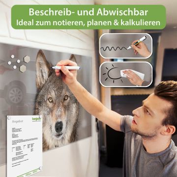 Bitte beachten Sie, dass ausschliessliche spezielle Magnete an der Glastafel haften. Wir empfehlen banjado Neodym Magnete, diese sind durch uns auf Wirksamkeit geprüft.