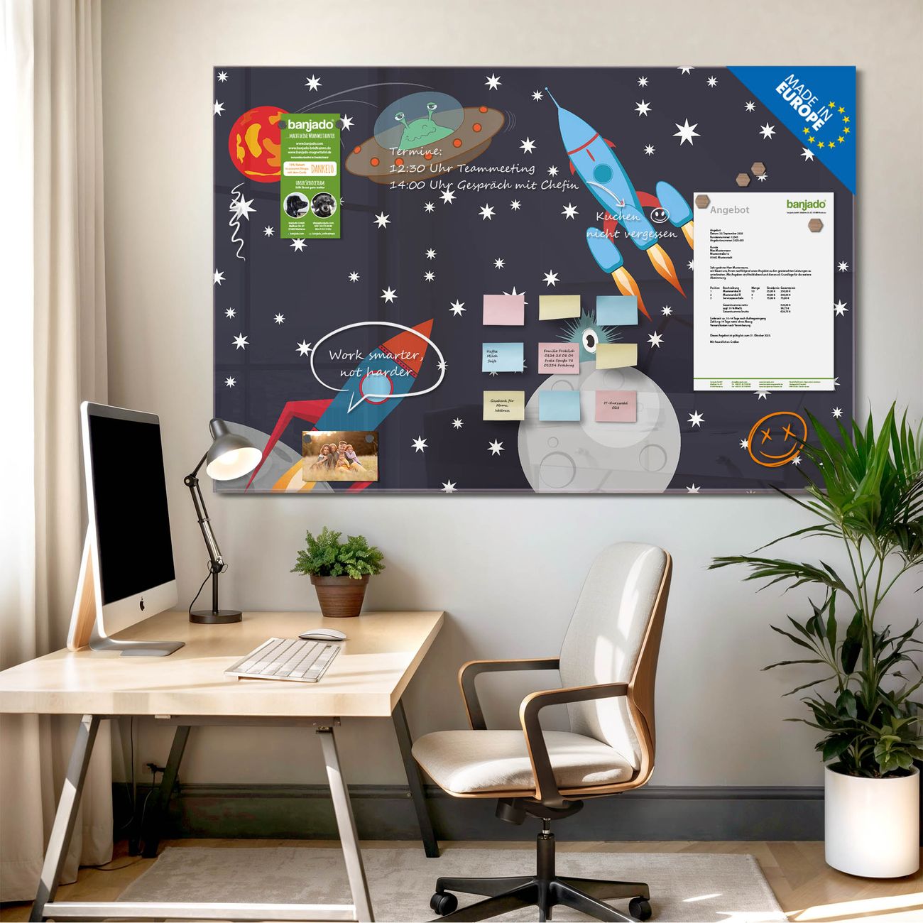 Die banjado Glas Magnettafel mit dem Motiv Motiv Space Traffic verbindet Funktionalität mit Stil. Sie ersetzt das Zettelchaos durch klare Strukturen und bringt dabei eine warme, natürliche Atmosphäre in Ihr Zuhause. Ob im Büro, in der Küche oder im Eingangsbereich - dieses Design-Board zieht Blicke an und sorgt für Ordnung mit Charakter.