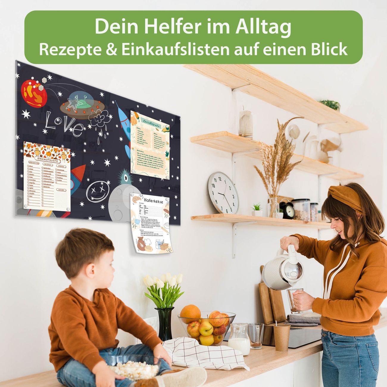 Ein Stück Design, das Ihren Alltag organisiert. Schreiben, heften, inspirieren - alles an einem Ort. Qualität, die man spürt. Montage leicht gemacht. Handwerk mit Herz - veredelt in Sachsen. Einzigartiges Design mit Motiv Motiv Space Traffic Beschreibbare Glasoberfläche, leicht zu reinigen Starke Magnetkraft durch Stahlrückwand Inklusive 4 Neodym-Magneten Flexible Montageoptionen Handveredelt in Sachsen - Qualität, die bleibt