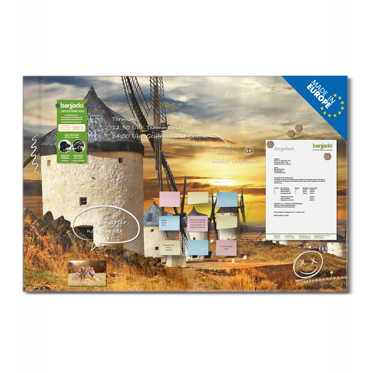 Glas Magnettafel im Querformat Motiv Spanische Windmühlen