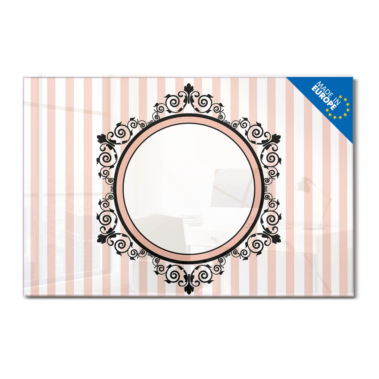 Material: 4mm Sicherheitsglas mit Metallrückwand Eigenschaften: beschreibbar, magnetisch, kratzfest Maße: 120x60x0,6cm, 10,80kg schwer Motiv Nummer 10937 Spiegel Zubehör: inklusive 4 Neodym-Magnete