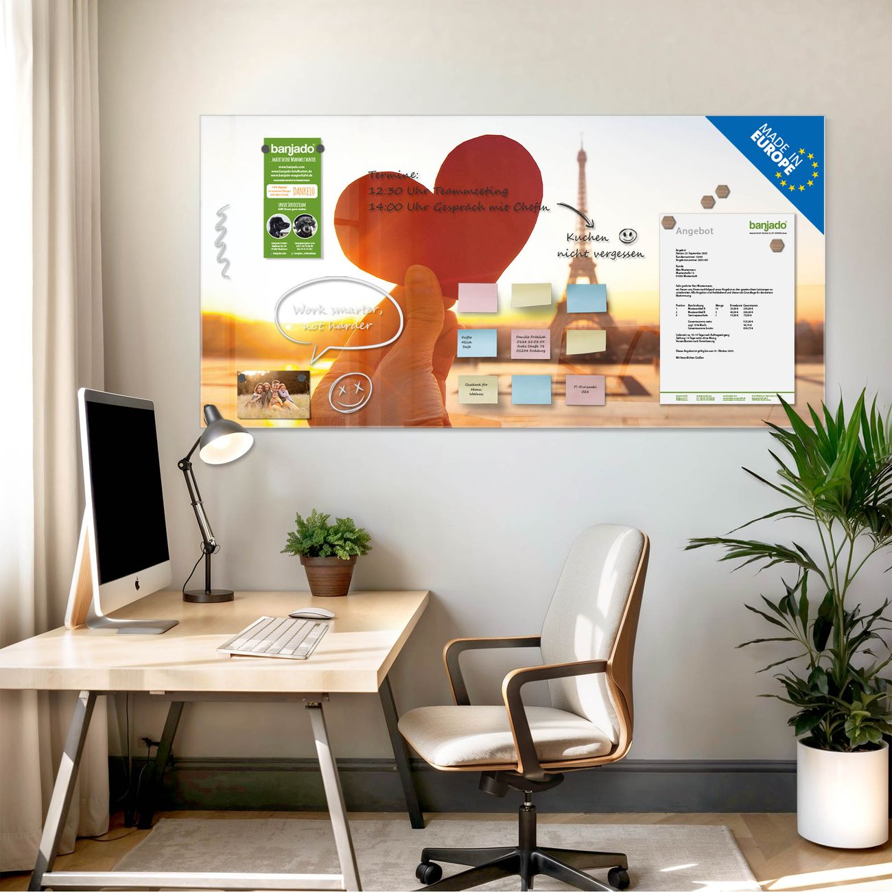 Jede Glas Magnettafel wird in unserer Werkstatt von Hand gefertigt und sorgfältig geprüft. So erhalten Sie ein echtes Qualitätsprodukt, das Funktion und Ästhetik perfekt vereint.?? Warum banjado?
