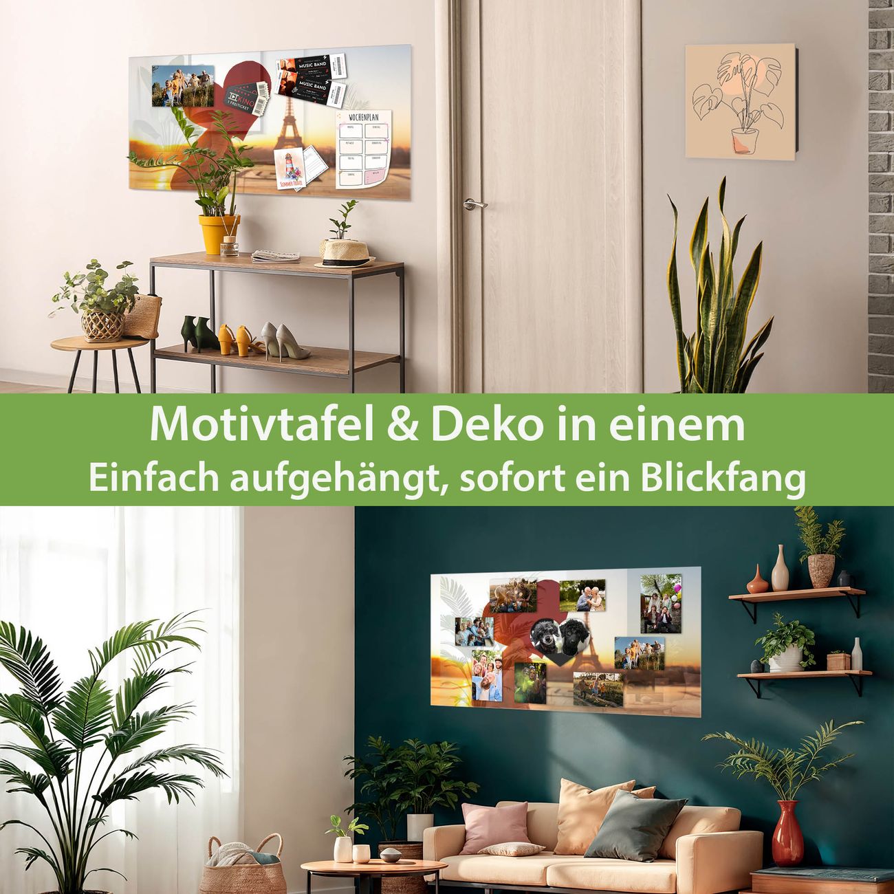 Die banjado Glas Magnettafel mit dem Motiv Motiv Stadt Der Liebe verbindet Funktionalität mit Stil. Sie ersetzt das Zettelchaos durch klare Strukturen und bringt dabei eine warme, natürliche Atmosphäre in Ihr Zuhause. Ob im Büro, in der Küche oder im Eingangsbereich - dieses Design-Board zieht Blicke an und sorgt für Ordnung mit Charakter.