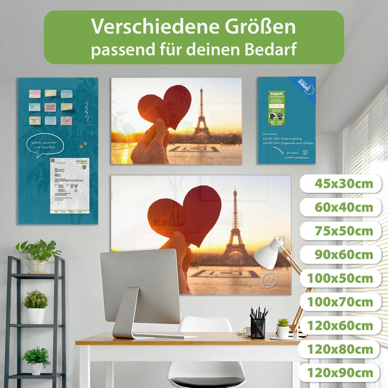 Die banjado Glas Magnettafel mit dem Motiv Motiv Stadt Der Liebe verbindet Funktionalität mit Stil. Sie ersetzt das Zettelchaos durch klare Strukturen und bringt dabei eine warme, natürliche Atmosphäre in Ihr Zuhause. Ob im Büro, in der Küche oder im Eingangsbereich - dieses Design-Board zieht Blicke an und sorgt für Ordnung mit Charakter.