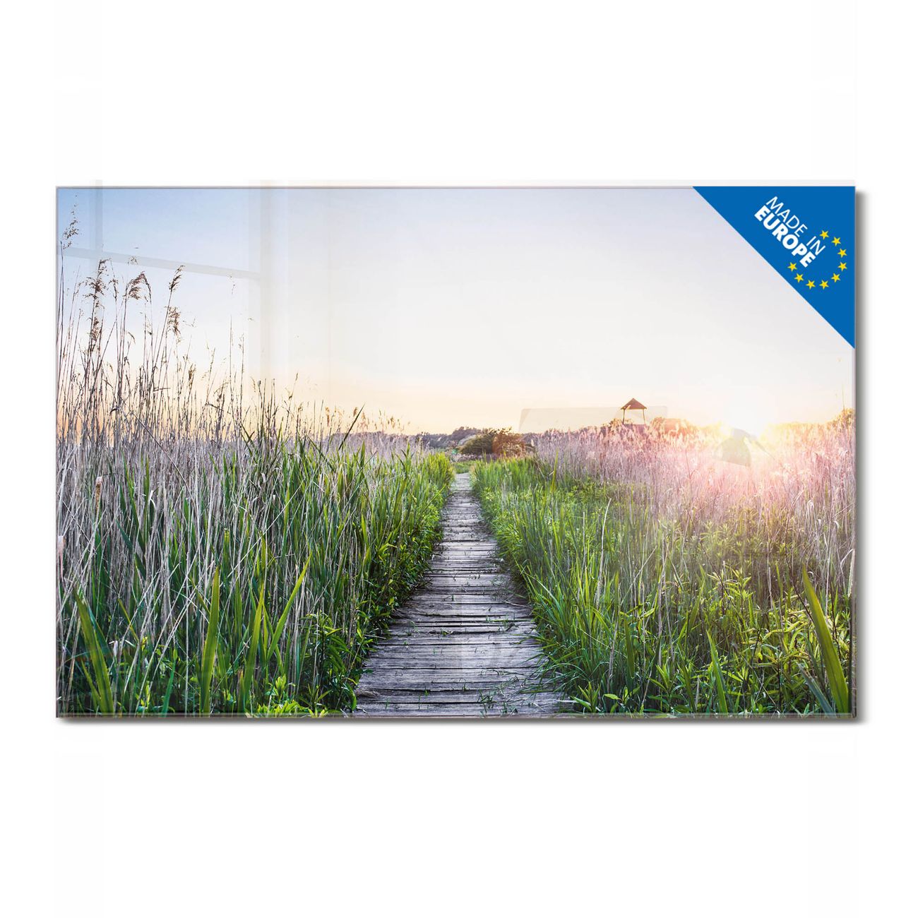 Glas Magnettafel im Querformat Motiv Steg Durchs Schilf