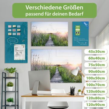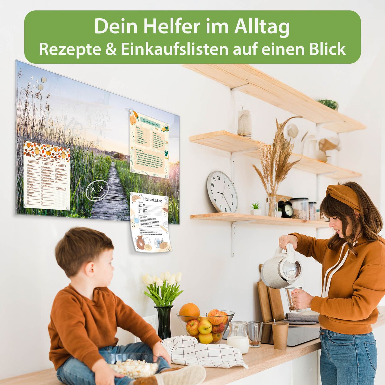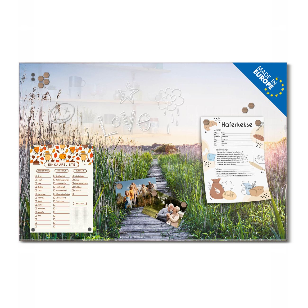 Die banjado Glas Magnettafel im Querformat mit Motiv Motiv Steg Durchs Schilf bringt Ordnung in Ihr Zettelchaos. Fotos, Termine, Notizen oder Rezepte lassen Sich hier stilvoll mit Magneten ordnen, so behalten Sie alles Wichtige im Blick. Das Memoboard aus Glas ist beschreibbar und wird Ihnen bereits mit 4 Neodym-Magneten geliefert. Das Format bietet Ihnen ausreichend Platz um alle wichtigen Informationen im Blick zu behalten.