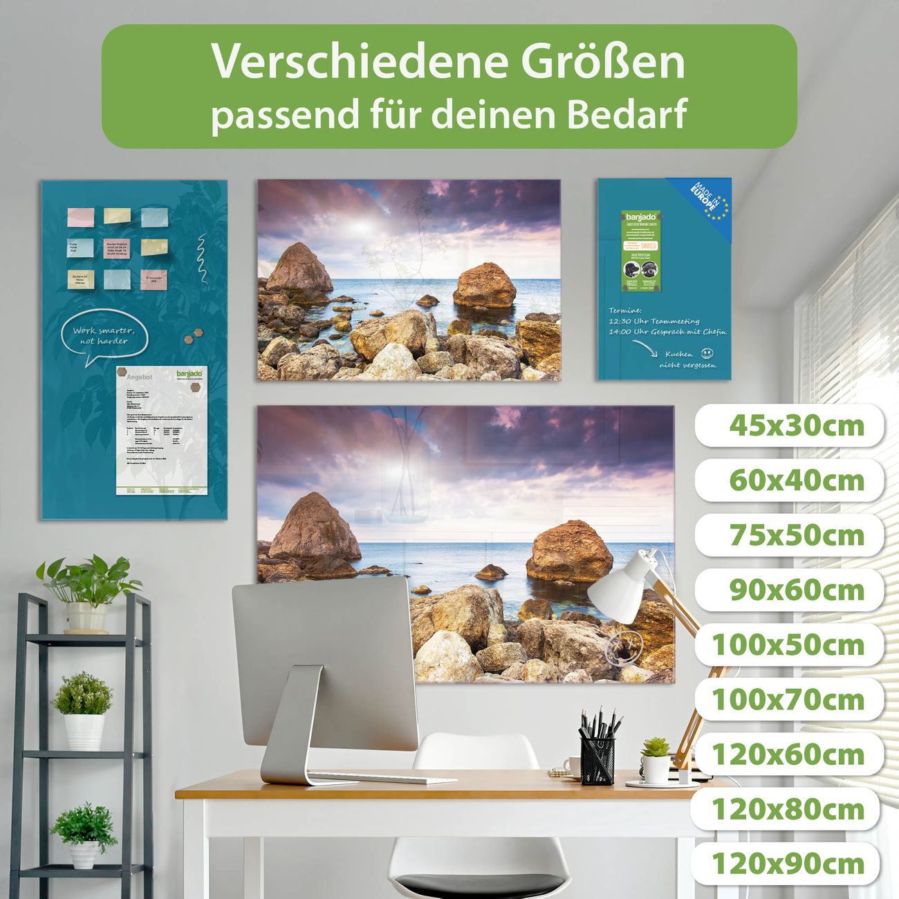 Die banjado Glas Magnettafel mit dem Motiv Motiv Steinbucht verbindet Funktionalität mit Stil. Sie ersetzt das Zettelchaos durch klare Strukturen und bringt dabei eine warme, natürliche Atmosphäre in Ihr Zuhause. Ob im Büro, in der Küche oder im Eingangsbereich - dieses Design-Board zieht Blicke an und sorgt für Ordnung mit Charakter.