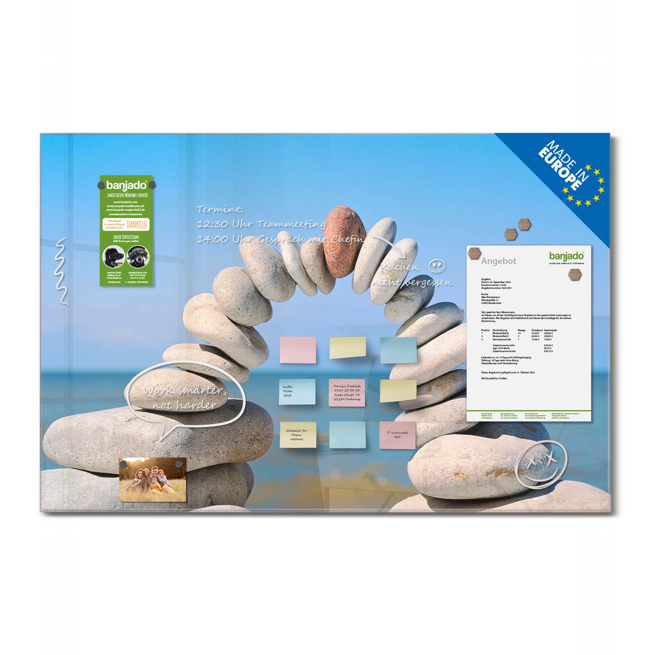 Glas Magnettafel im Querformat Motiv Steine&Meer