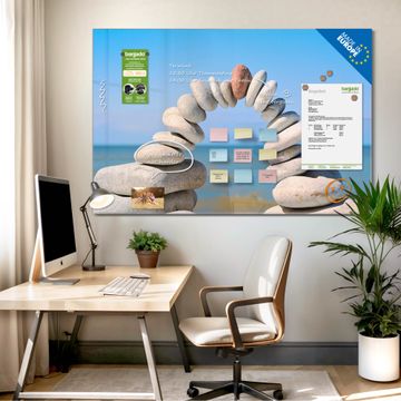 Die banjado Glas Magnettafel mit dem Motiv Motiv Steine&Meer verbindet Funktionalität mit Stil. Sie ersetzt das Zettelchaos durch klare Strukturen und bringt dabei eine warme, natürliche Atmosphäre in Ihr Zuhause. Ob im Büro, in der Küche oder im Eingangsbereich - dieses Design-Board zieht Blicke an und sorgt für Ordnung mit Charakter.