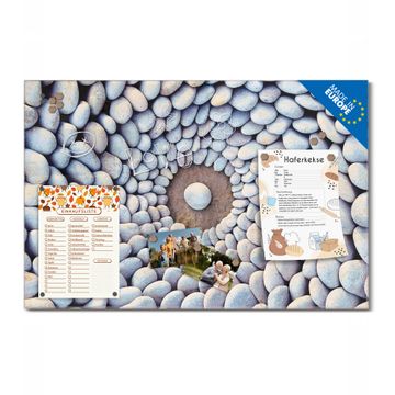 Material: 4mm Sicherheitsglas mit Metallrückwand Eigenschaften: beschreibbar, magnetisch, kratzfest Maße: 45x30x0,6cm, 2,03kg schwer Motiv Nummer 12535 Steinkreis Zubehör: inklusive 4 Neodym-Magnete