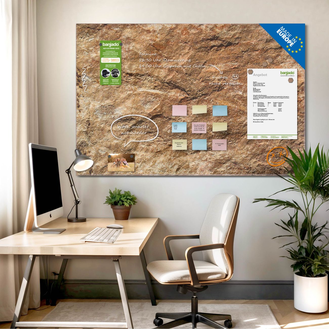 Die banjado Glas Magnettafel mit dem Motiv Motiv Steinstruktur verbindet Funktionalität mit Stil. Sie ersetzt das Zettelchaos durch klare Strukturen und bringt dabei eine warme, natürliche Atmosphäre in Ihr Zuhause. Ob im Büro, in der Küche oder im Eingangsbereich - dieses Design-Board zieht Blicke an und sorgt für Ordnung mit Charakter.