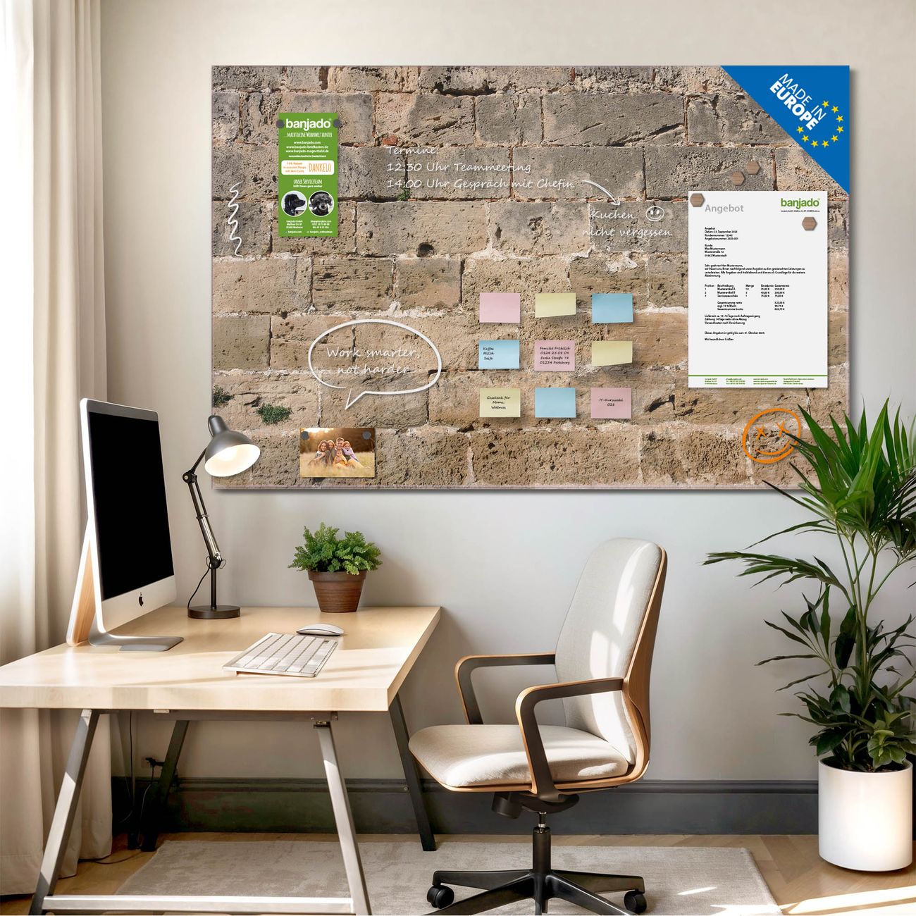 Die banjado Glas Magnettafel mit dem Motiv Motiv Steinwand Antik verbindet Funktionalität mit Stil. Sie ersetzt das Zettelchaos durch klare Strukturen und bringt dabei eine warme, natürliche Atmosphäre in Ihr Zuhause. Ob im Büro, in der Küche oder im Eingangsbereich - dieses Design-Board zieht Blicke an und sorgt für Ordnung mit Charakter.
