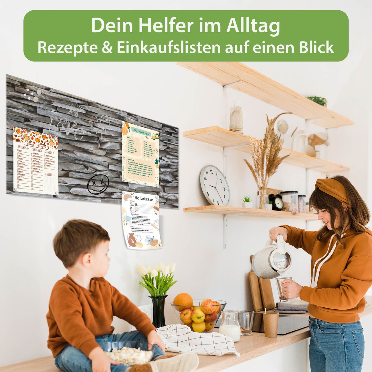 Ein Stück Design, das Ihren Alltag organisiert. Schreiben, heften, inspirieren - alles an einem Ort. Qualität, die man spürt. Montage leicht gemacht. Handwerk mit Herz - veredelt in Sachsen. Einzigartiges Design mit Motiv Motiv Steinwand Beschreibbare Glasoberfläche, leicht zu reinigen Starke Magnetkraft durch Stahlrückwand Inklusive 4 Neodym-Magneten Flexible Montageoptionen Handveredelt in Sachsen - Qualität, die bleibt