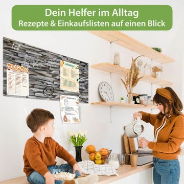 Die banjado Glas Magnettafel mit dem Motiv Motiv Steinwand verbindet Funktionalität mit Stil. Sie ersetzt das Zettelchaos durch klare Strukturen und bringt dabei eine warme, natürliche Atmosphäre in Ihr Zuhause. Ob im Büro, in der Küche oder im Eingangsbereich - dieses Design-Board zieht Blicke an und sorgt für Ordnung mit Charakter.