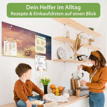 Auf der glatten Glasoberfläche lassen sich Termine, Rezepte oder Notizen ganz einfach mit Kreidestiften festhalten und rückstandslos entfernen. Starke Neodym-Magnete halten Ihre wichtigsten Erinnerungen sicher an Ort und Stelle. So entsteht Ihre ganz persönliche Ideenwand - jeden Tag neu.