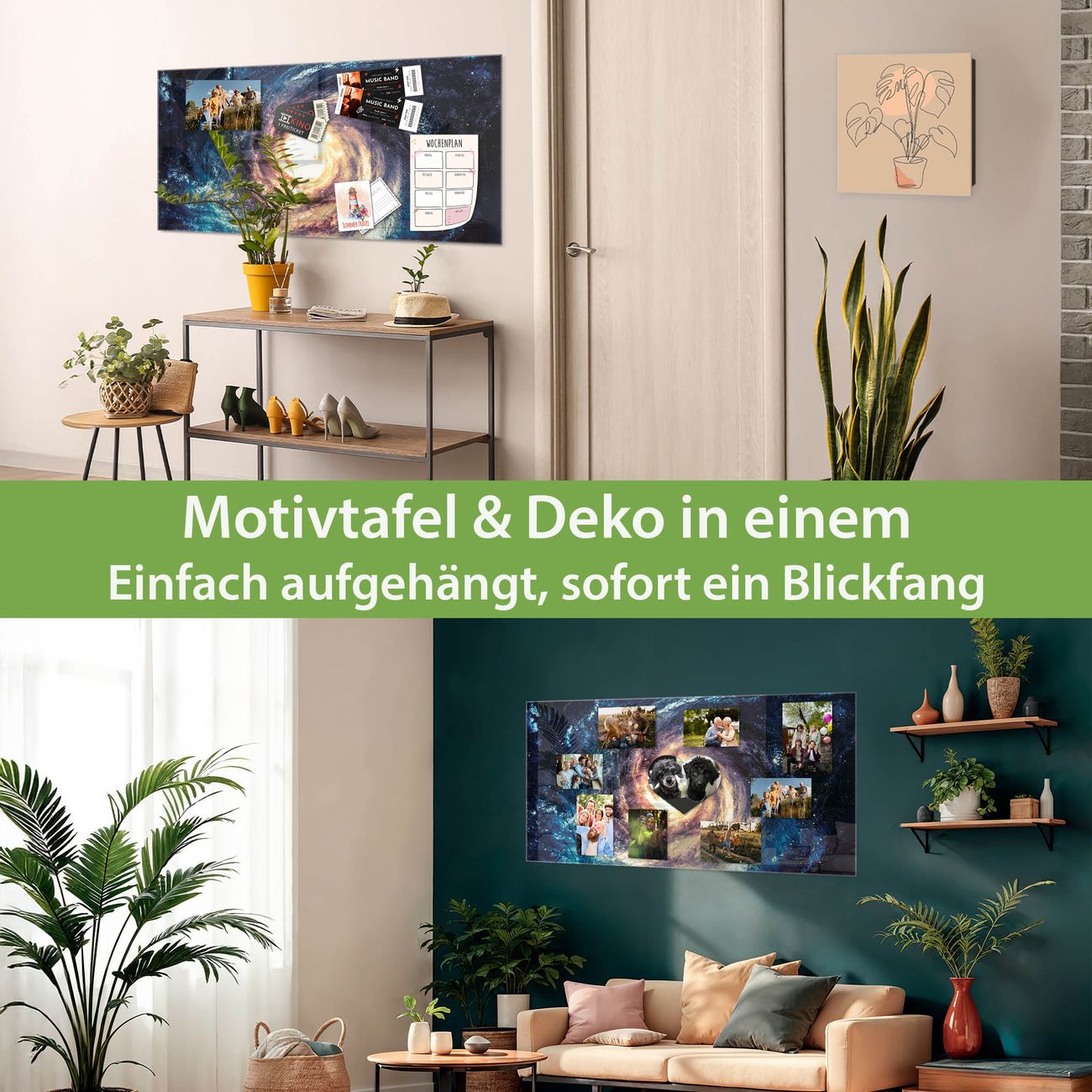 Ein Stück Design, das Ihren Alltag organisiert. Schreiben, heften, inspirieren - alles an einem Ort. Qualität, die man spürt. Montage leicht gemacht. Handwerk mit Herz - veredelt in Sachsen. Einzigartiges Design mit Motiv Motiv Sternenwirbel Beschreibbare Glasoberfläche, leicht zu reinigen Starke Magnetkraft durch Stahlrückwand Inklusive 4 Neodym-Magneten Flexible Montageoptionen Handveredelt in Sachsen - Qualität, die bleibt