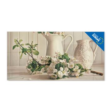 Material: 4mm Sicherheitsglas mit Metallrückwand Eigenschaften: beschreibbar, magnetisch, kratzfest Maße: 100x50x0,6cm, 7,50kg schwer Motiv Nummer 10539 Stillleben Kirschblüten Zubehör: inklusive 4 Neodym-Magnete