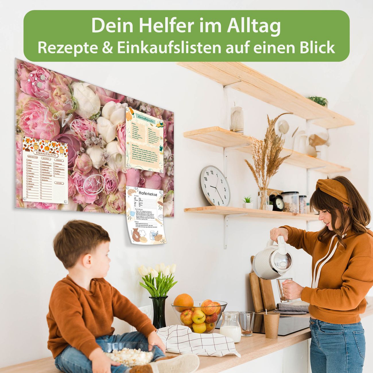Ein Stück Design, das Ihren Alltag organisiert. Schreiben, heften, inspirieren - alles an einem Ort. Qualität, die man spürt. Montage leicht gemacht. Handwerk mit Herz - veredelt in Sachsen. Einzigartiges Design mit Motiv Motiv Strauss Rosen Beschreibbare Glasoberfläche, leicht zu reinigen Starke Magnetkraft durch Stahlrückwand Inklusive 4 Neodym-Magneten Flexible Montageoptionen Handveredelt in Sachsen - Qualität, die bleibt