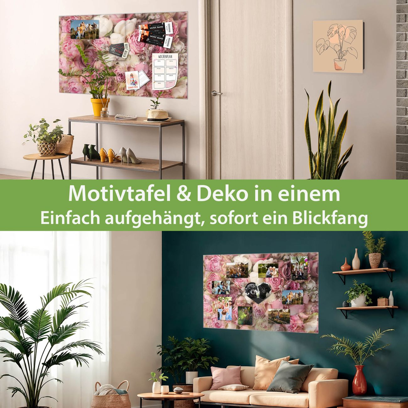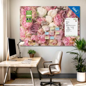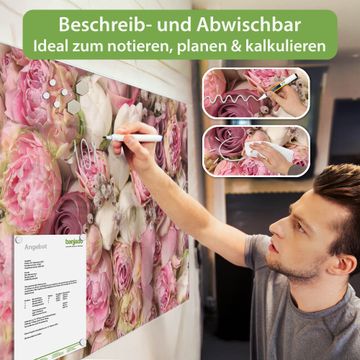 Die banjado Glas Magnettafel mit dem Motiv Motiv Strauss Rosen verbindet Funktionalität mit Stil. Sie ersetzt das Zettelchaos durch klare Strukturen und bringt dabei eine warme, natürliche Atmosphäre in Ihr Zuhause. Ob im Büro, in der Küche oder im Eingangsbereich - dieses Design-Board zieht Blicke an und sorgt für Ordnung mit Charakter.