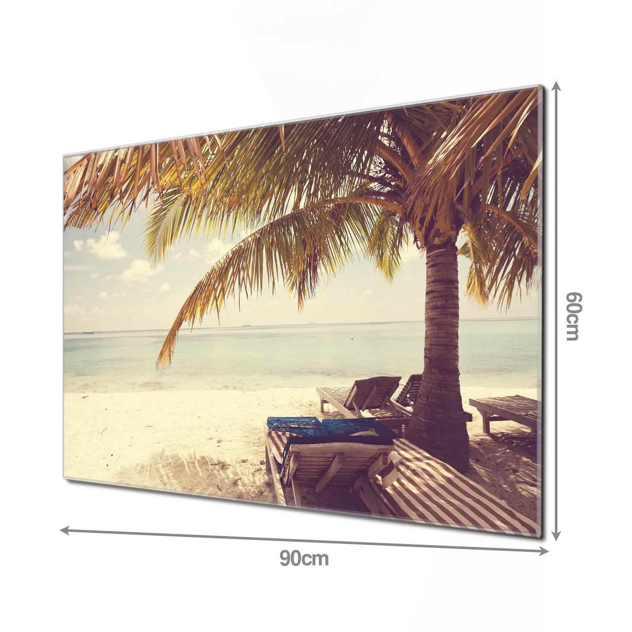 Material  4mm Sicherheitsglas mit Metallrückwand Eigenschaften  beschreibbar, magnetisch, kratzfest Maße  90x60x0,6cm, 8,10kg schwer Motiv  Nummer 11922 Südseestrand Zubehör  inklusive 4 Neodym-Magnete